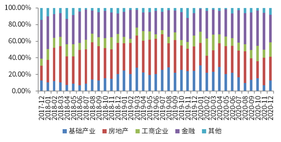 图2 2017年12月-2020年12月信托资产五大投向占比