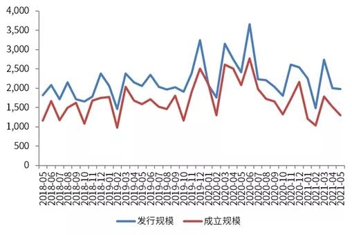 图1 2018年5月-2021年5月信托产品发行规模与成立规模(亿元)