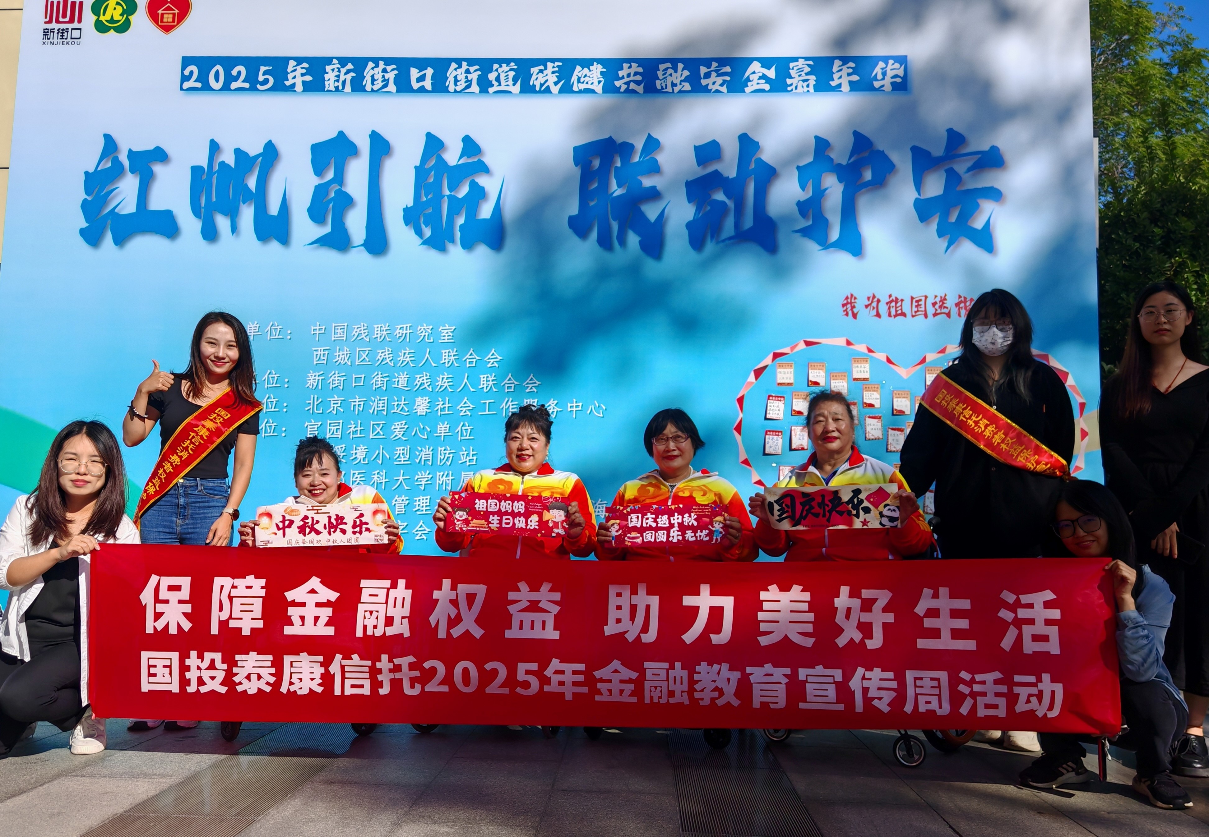 为深入践行金融工作的政治性、人民性,提升特殊群体金融服务的可及性,2025年9月28日,国投泰康信托积极参与新街口街道“残健共融安全嘉年华”活动,面向残疾人朋友及社区居民开展以“反诈防骗”与“金融惠民助民”为主题的金融知识宣教活动,打通金融服务基层的“最后一公里”,助力提升特殊群体的金融素养和风险防范能力。