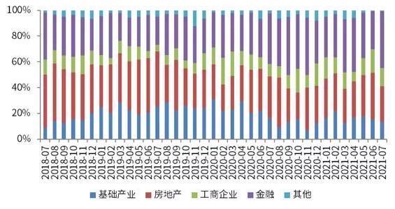 图2 2018年7月-2021年7月信托资产五大投向占比