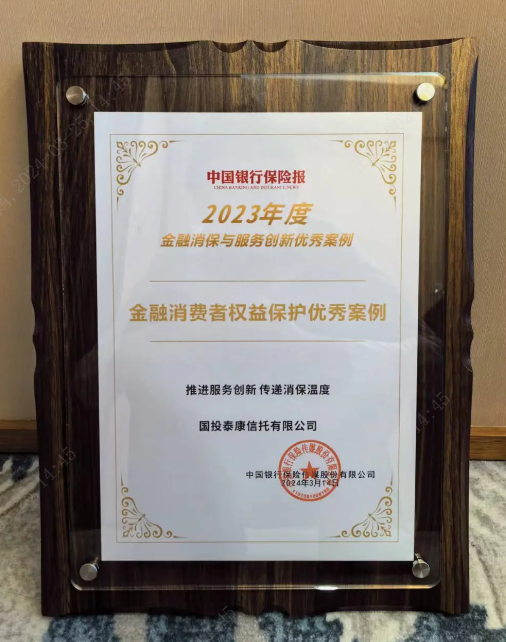 国投泰康信托荣获2023年度金融消费者权益保护优秀案例奖项